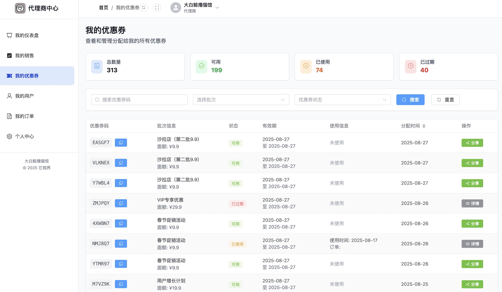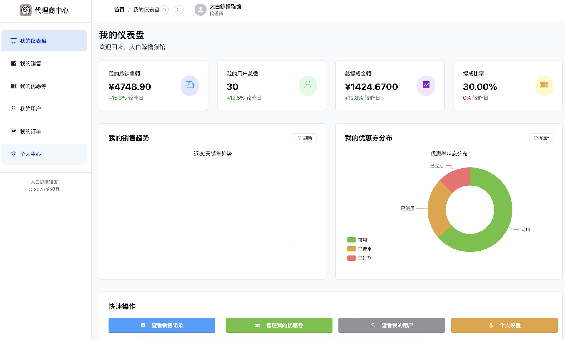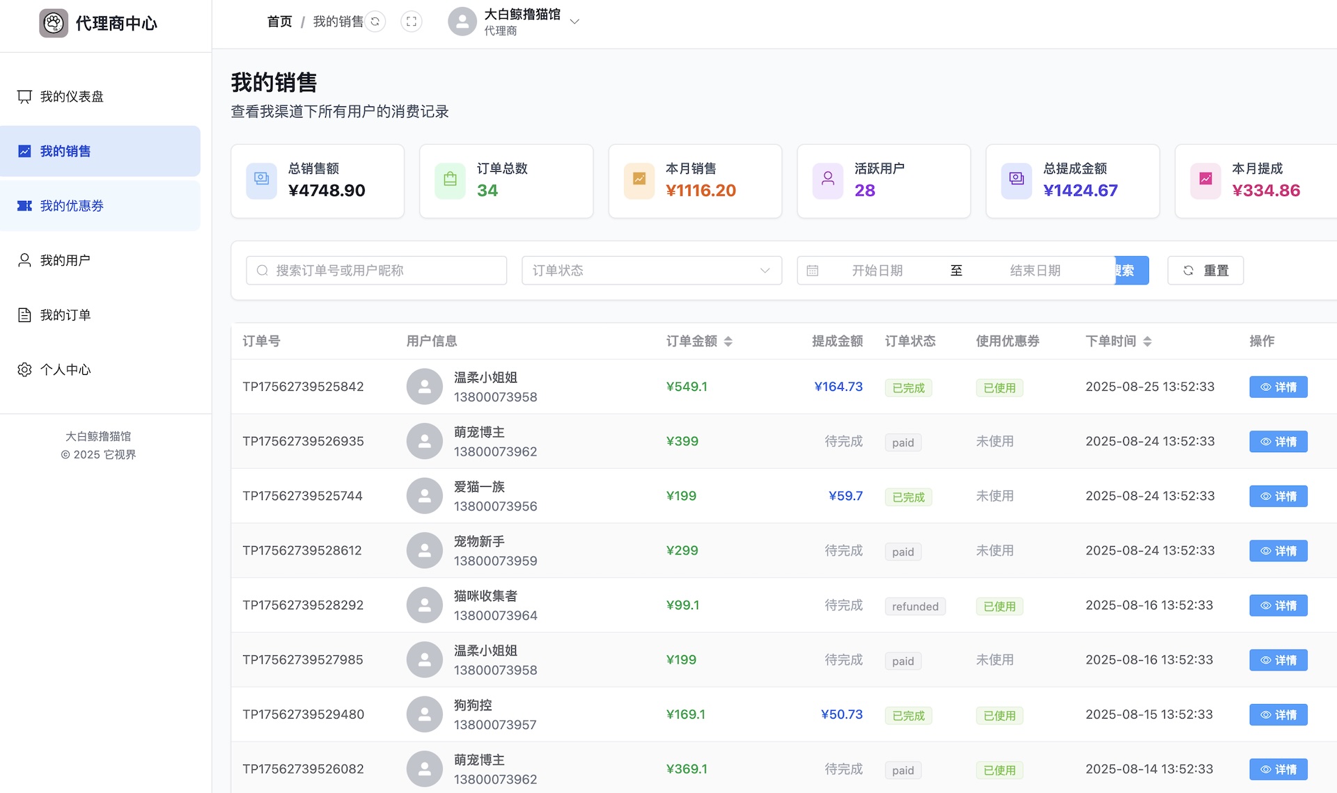 我们为代理商伙伴打造了专属的后台管理系统,轻松管理用户、追踪收益,将店内客流转化为额外收入。